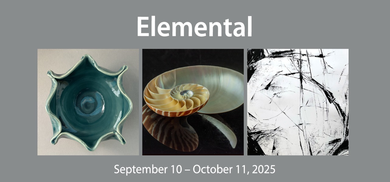 Elemental: Ceramics by Jeanne D’Amico, photographs by Julie L’Heureux, and works on paper by Natalie MacKnight. On view September 10 – October 11, 2025. Reception on September 13, 5:00–7:00 pm.
