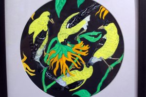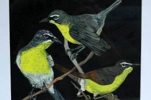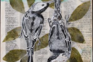 “I am drawn to birds, their sense of immediacy and dependence on nature. I am comforted by their songs, their arrival signaling the change of seasons and their instinct to build nests. When the pandemic hit I took solace from the birds at the feeder by my kitchen table where I spent hours navigating teaching from home and helping my two young children learn via screens. Without our typical schedules of school and outside activities as markers of time, it seemed to slow down. Like many we consoled ourselves by long walks in the woods and more time than ever in the backyard. The birds still felt comforting and unchanged, despite the radical transformation that had happened to so many other aspects of our lives.”