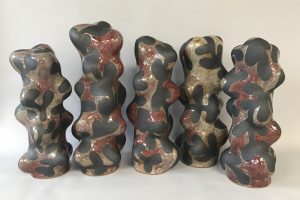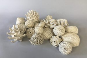 In “Far and Wide” Mary Morazzi Henderson features ceramic sculptures that were made in response to the global crisis of the pandemic and climate change.