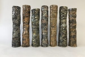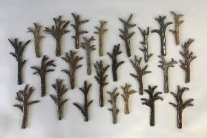 At the same time, the increasing threat of global climate change on the environment was constantly in the news. Daily reports of catastrophic wildfires, life-threatening droughts, heavy rains and other environmental disasters became the subject for newer and different forms. Her “Roadside Trees” and “Reforestation” sculptures — representing hope and strength — are inspired by the benefits trees have on the environment and their importance to everyday living.
