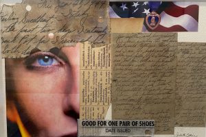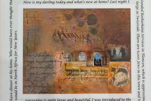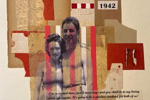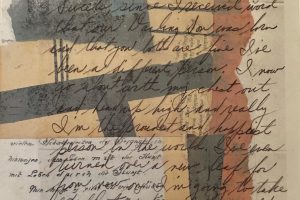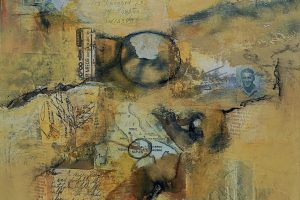 In this exhibit, Judith’s work reflects her exploration of collage and the unlimited ways of integrating paper and paint. Works in this exhibit range from pure collage to multi-layered oil paintings that incorporate fragments of her father’s WWII letters and photographs. The textures and forms created by the collage pieces add to the intrigue, subtlety, and complexity of each composition. These collages are also a tribute to her parents and in-laws as they coped with, and survived WWII. Each work conveys the painful separation, fragmentation, fear, and horrors of war as well as the love, hope, and resilience that helped her family survive.