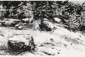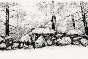 The paintings Natalie MacKnight presents in Viewpoint fuse the energy and quiet contemplation she finds when walking among the boulders and old stone walls of the forest. To truly appreciate the impact these elements have on their surroundings, walk around and take a look back from all sides. A boulder may embody a completely different relationship to its environment when seen from another viewpoint.